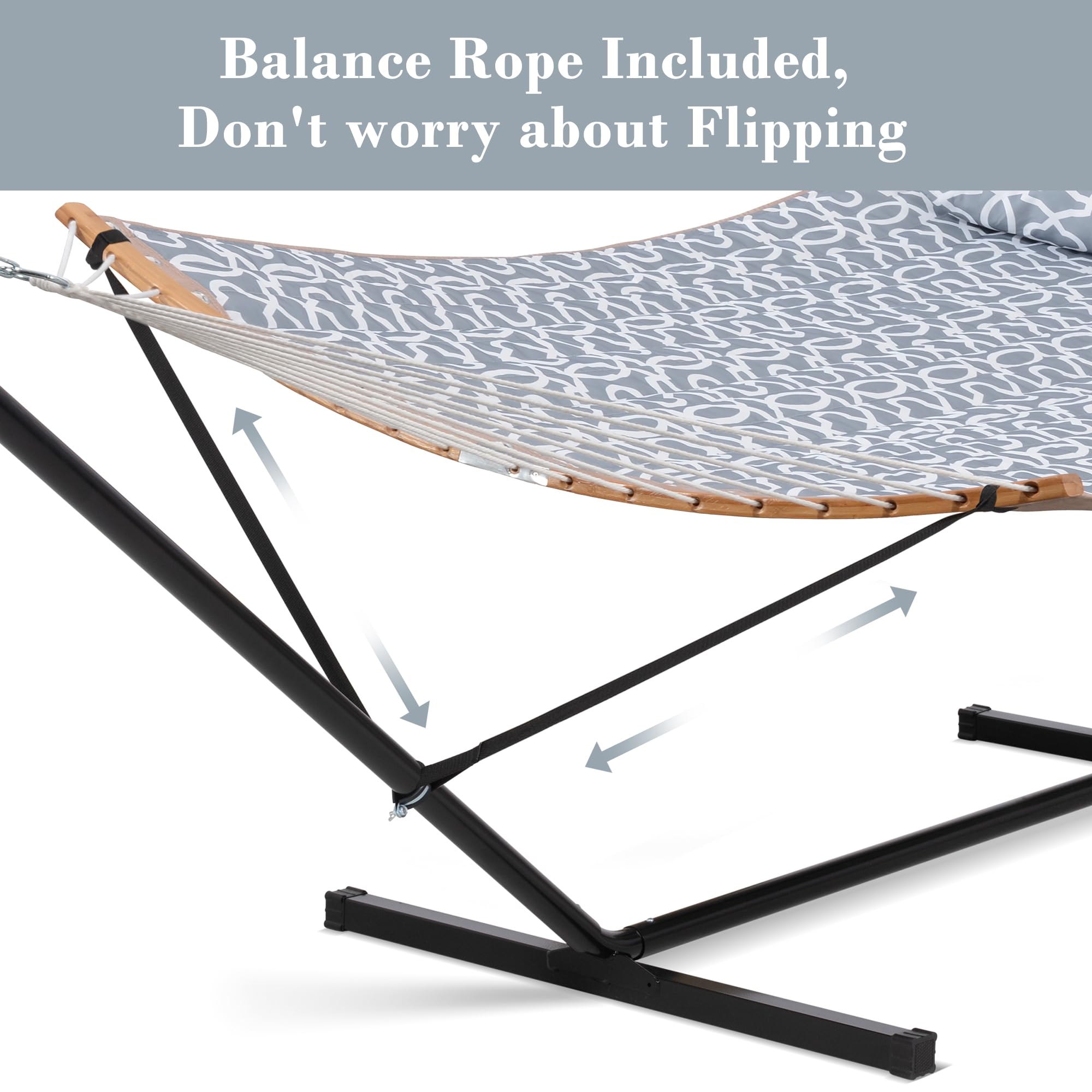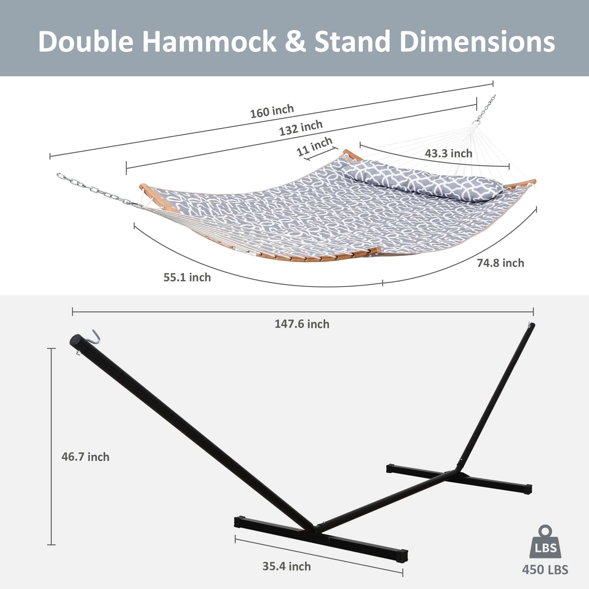 - Extra Large Size: Larger hammock bed size of 74.8″ L * 55.1″ W. Hammock pillow size: 43.3” (L) x 11.0” (W). This heavy duty hammock is made for sharing. Designed to support up to 450 pounds, you may enjoy a relaxing swing on the hammock with family, friends and significant others